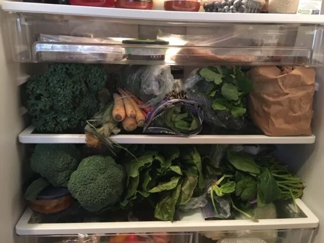 Our fridge is mostly green. We are not vegan or vegetarian. However, the majority of our diet is plant based. We also enjoy meat every once in a while.
